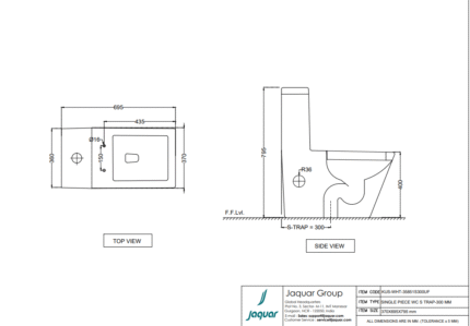 The Jaquar Tankless Single Piece WC – Model ARS-WHT-39851P180UFSMTL is a technologically advanced and space-efficient sanitary fixture designed for modern