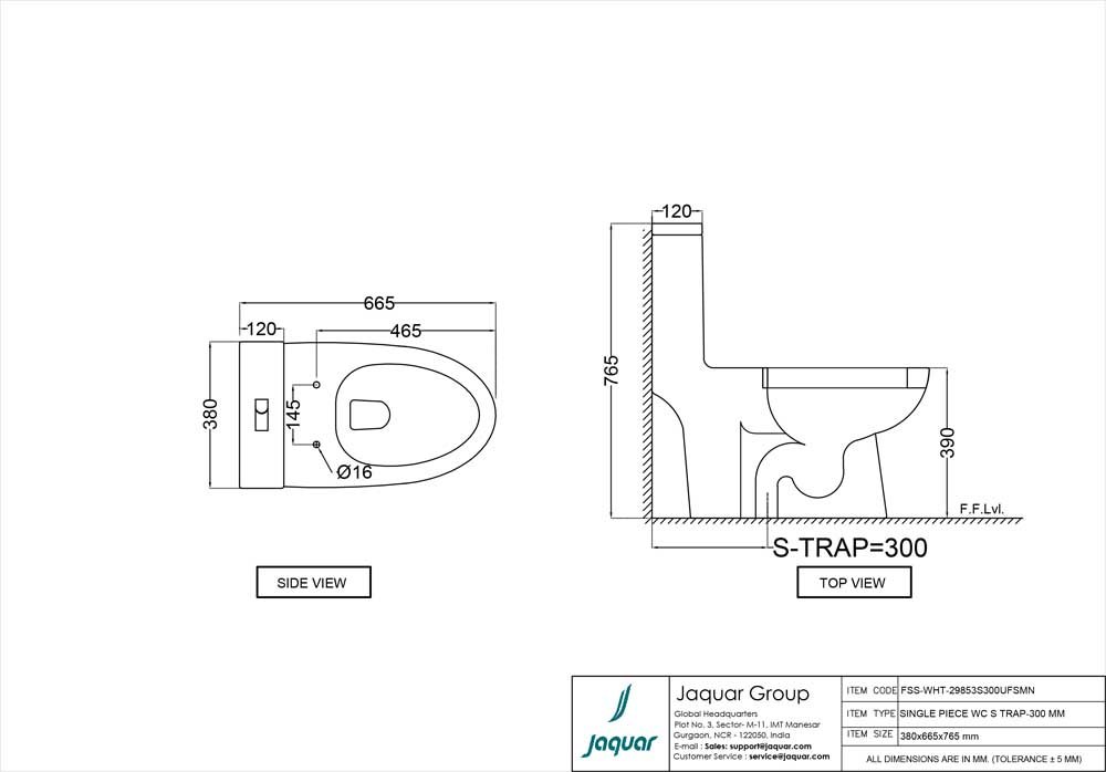 The Jaquar Single Piece WC (S-Trap) – Model FSS-WHT-29853S300UFSM is a stylish and high-performance sanitary fixture designed to elevate modern bathroom spaces. Made from premium vitreous china, it ensures durability, a smooth glossy finish, and long-lasting performance.